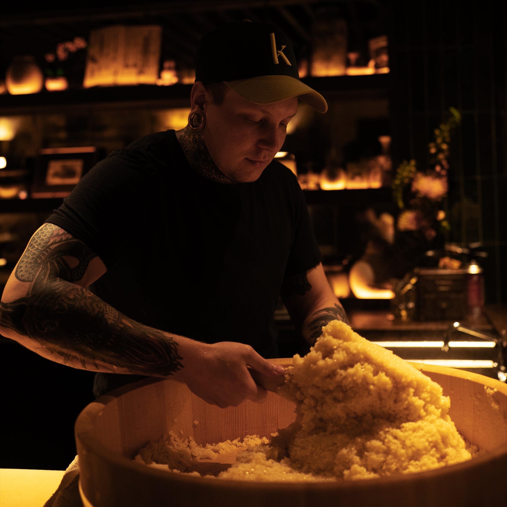 Original KASE x NOKO "K" Snapback hat in cream/green.